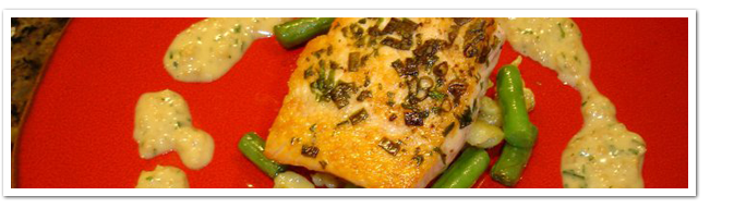 Sesame crusted Halibut over Asian vegetables with soy vinaigrette Herb Seared Salmon over Spatzle with Whole Grain Mustard Burre Blanc Pork Tenderloin Medallions over Roasted Cumin Risotto with Cilantro Chimichurri sauce Grilled Filet Mignon w Jumbo Prawns and Roasted Tomato Hollandaise Sliced NY Strip Steak with Caramelized Onions and Roquefort Butter